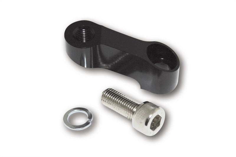 Rallonge de rétroviseur intelligente HIGHSIDER Extension de rétroviseur noire en aluminium. Convient aux rétroviseurs avec filetages M10 x 1,25 mm à droite et à gauche. La vis avec filetage à gauche de 10 x 1,25 mm est incluse dans la livraison. Rehausse le rétroviseur de 35 mm et l'élargit de 40 mm vers l'extérieur. Contenu de la livraison : 1 paire contient 2 x extension, noir 2 x vis M10 x 1,25 mm, filetage à droite 1 x vis M10 x 1,25 mm, filetage à gauche 2 x anneaux de retenue