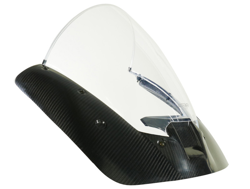 Sur cette moto de course dynamique, il s'adapte parfaitement au design de la moto. Disponible en version claire, incolore et noire.