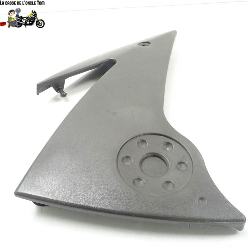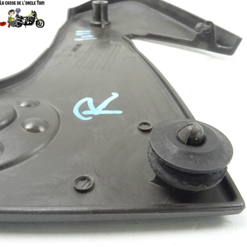 Le cache plastique platine droit joue un rôle crucial dans la protection des composants internes de votre moto tout en apportant une touche esthétique. Bien qu'il s'agisse d'une pièce d'occasion, elle conserve toute sa fonctionnalité malgré quelques traces d'usure visibles, témoignant de son histoire passée.