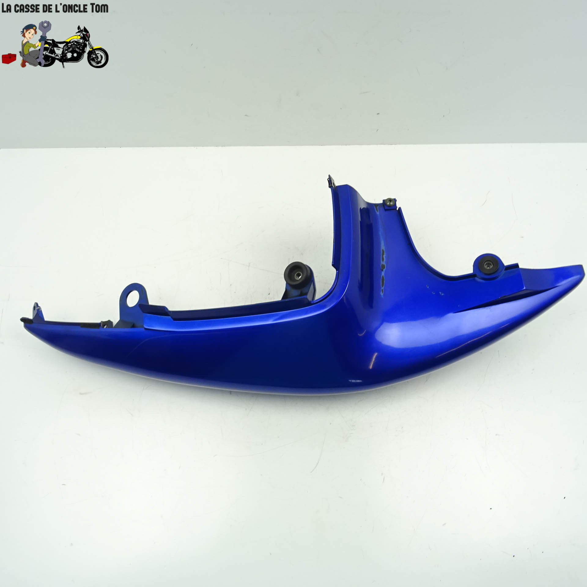 Cette pièce a quelques marques d'usure, témoins de son histoire, mais reste fonctionnelle et solide. Une grande rayure légère sur le dessus est présente, mais cela n'affecte en rien sa performance. Opter pour notre demi coque arrière droit, c'est choisir une solution économique et écologique, en contribuant à la réduction des déchets et en favorisant le recyclage des pièces moto Suzuki.