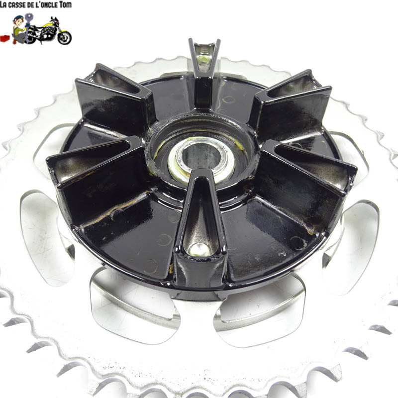 La couronne et le porte couronne jouent un rôle crucial dans le bon fonctionnement de votre moto. Ces éléments assurent la transmission de puissance de votre moteur à la roue arrière, vous permettant de profiter d'une conduite fluide et performante. Bien que le protège écrou soit légèrement tordu, cela n'affecte en rien la fonctionnalité de la pièce. C'est une excellente occasion d'acquérir une pièce Yamaha d'occasion à un prix compétitif.