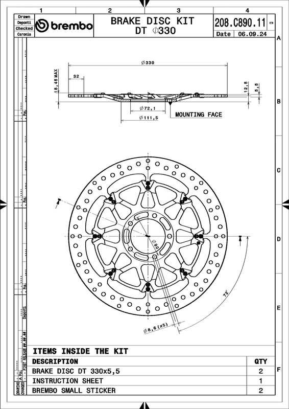 Le disque T-Drive, basé sur l'expérience acquise lors des épreuves MotoGP et Superbike, présente un couplage innovant entre le rotor et la cloche, constitué de huit goupilles en forme de T usinées dans le disque et de huit contours sur la cloche, permettant ainsi l'élimination des cliquets d'entraînement. Une étude spécifique des tolérances montre que cette configuration permet d'obtenir non seulement une réduction significative du poids mais aussi un flottement axial et radial capable de transmettre un couple de freinage plus important.