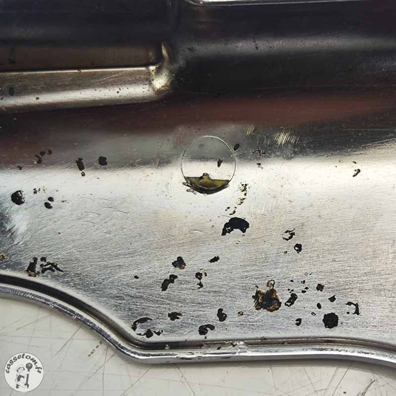 Ecope radiateur d'eau inférieure Triumph 2300 rocket III 2005 Pièce d'occasion en état d'usage, plastique abimé et revêtement abimé piqué