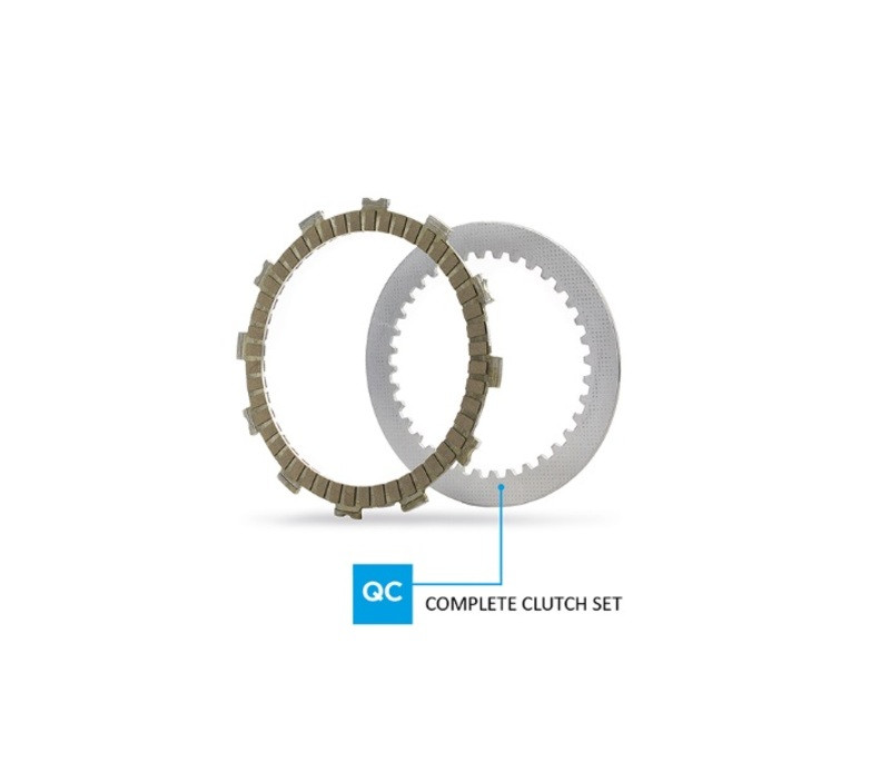 Les embrayages Pro Race représentent le haut de gamme. Ils sont le résultat de la recherche sur de nouvelles technologies combinées à des matériaux innovants développés en collaboration avec des équipes prestigieuses de Superbike, Moto3 et MXGP. Le matériau de friction est principalement composé de cellulose, de résines, de carbone et d'autres éléments garantissant un coefficient de friction extrêmement élevé et une compression minimale. Le design particulier des "encoches séparées" améliore le flux d'huile, permettant aux plaques de fonctionner avec plus d'efficacité. La combinaison de ce design avec le nouveau matériau de friction augmente la résistance à la fatigue et garantit une stabilité maximale en fonctionnement, même en conditions extrêmes, faisant de l'embrayage Pro Race un produit de compétition de très haute qualité.
