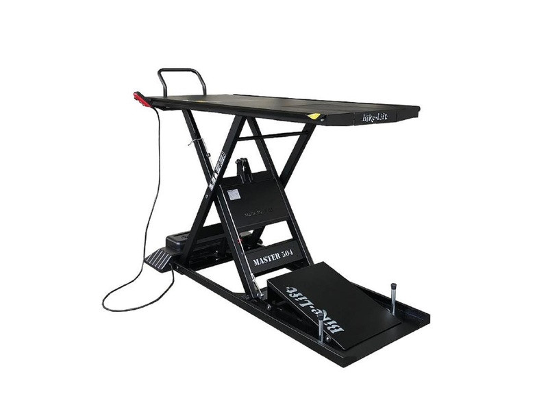 Conçue pour tout type de motos, la Master 504 Gate offre de multiples possibilités. La trappe arrière coulissante facilite l'accès à la roue pour une intervention simplifiée. Fonctionnelle, fiable et simple d'utilisation, elle est la référence des tables élévatrices. La rampe d'accès se glisse sous la tâble.
