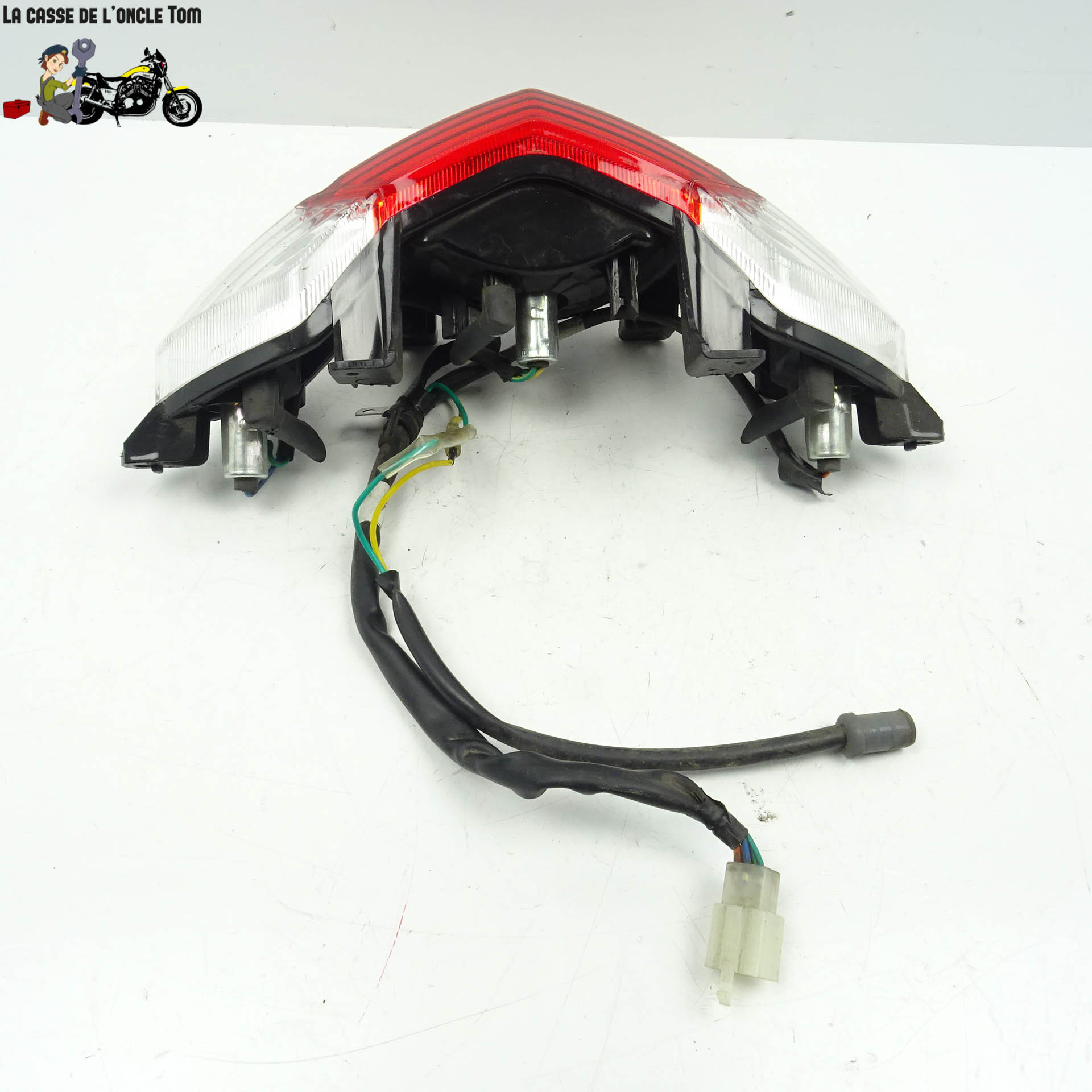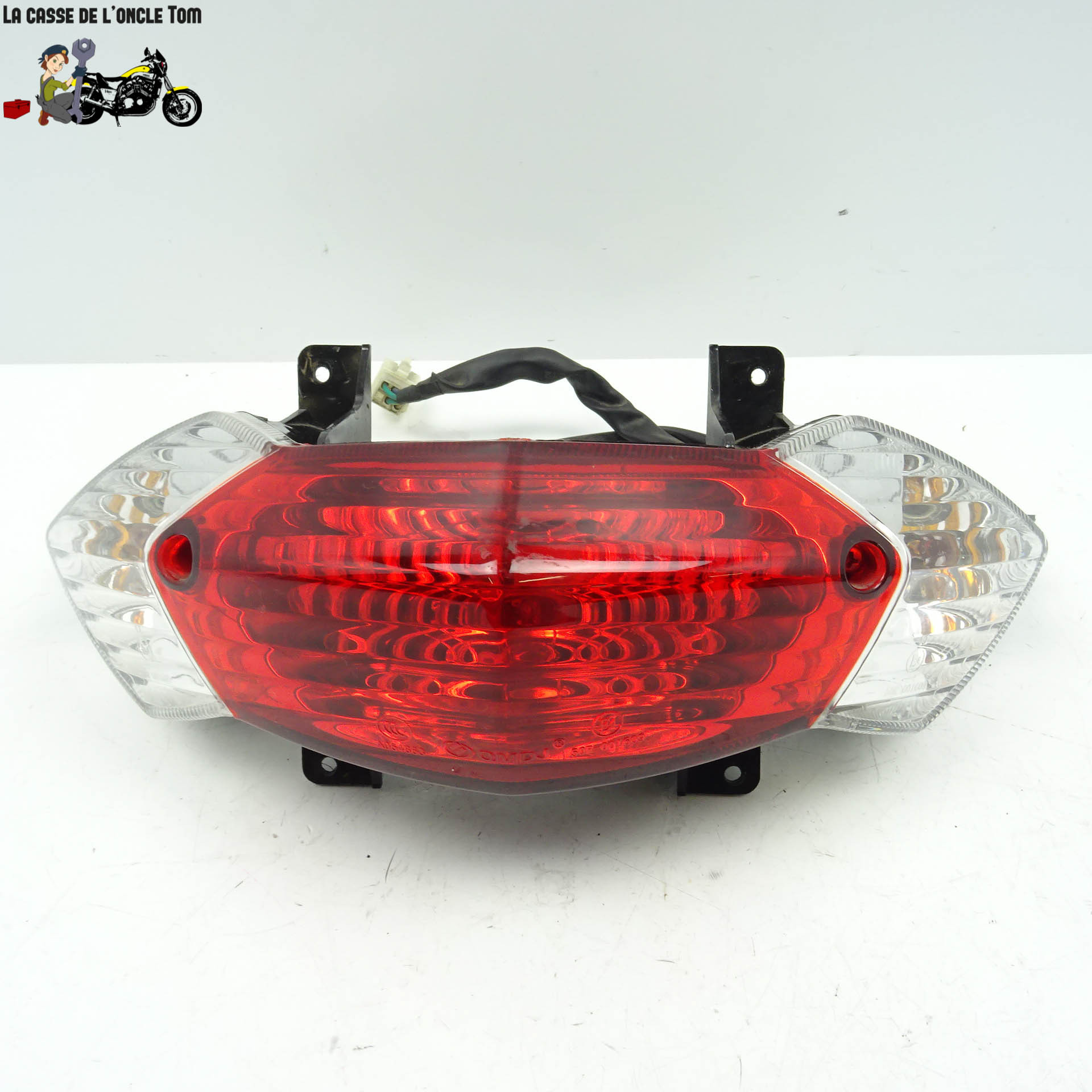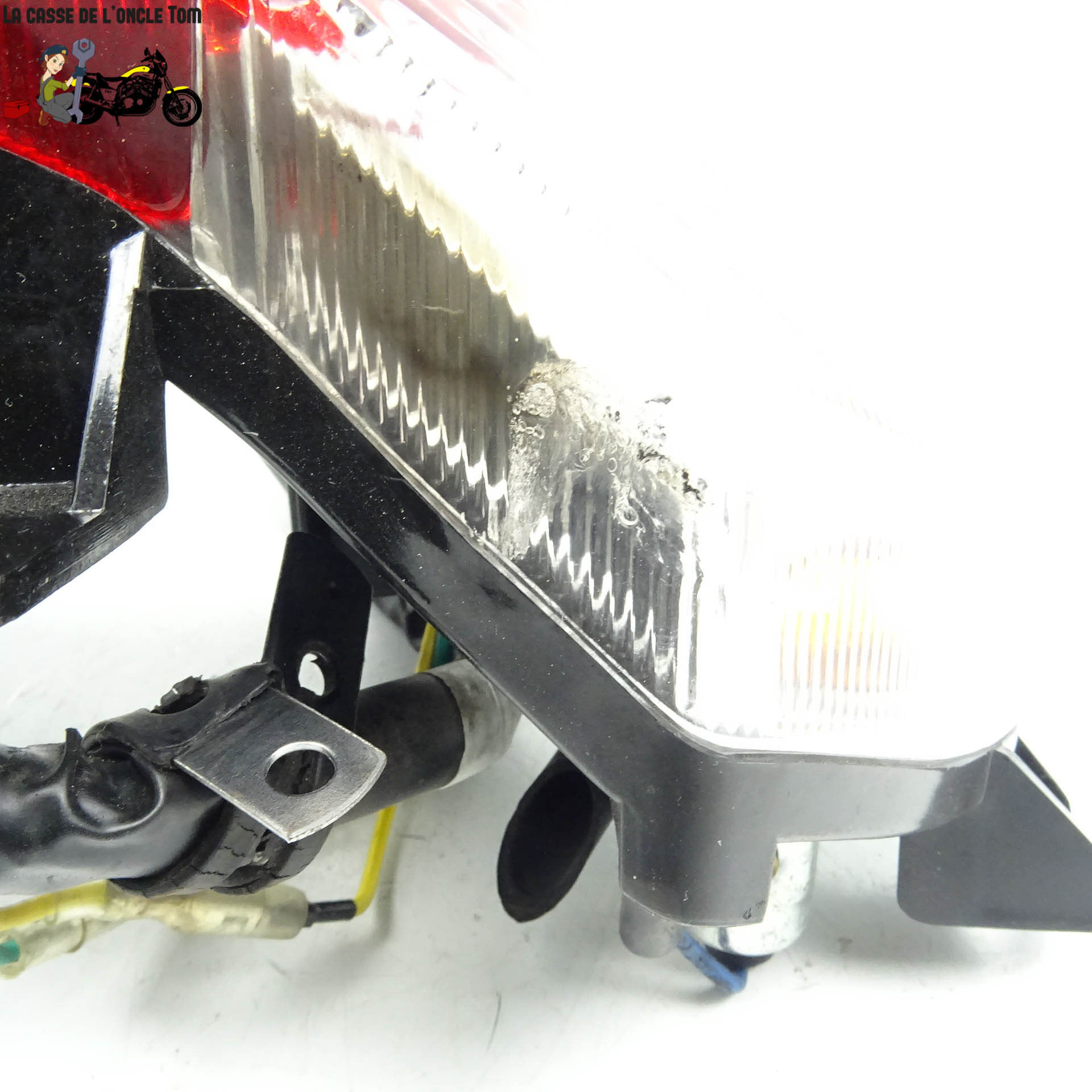Notre feu arrière d'occasion est en bon état, malgré une petite brûlure sur le côté inférieur droit. Cette pièce offre une alternative économique sans compromettre la fonctionnalité essentielle de votre moto.