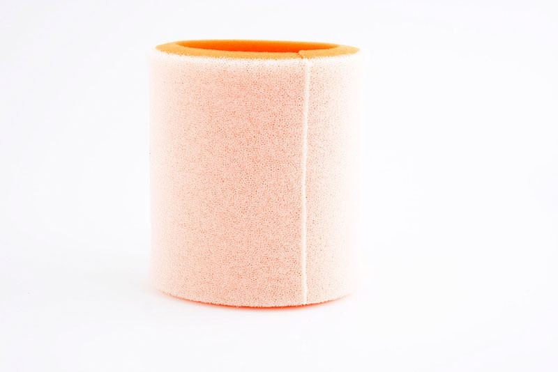 • Plus dense, la seconde couche de mousse stoppe les particules les plus fines tout en favorisant le passage du flux d’air.
