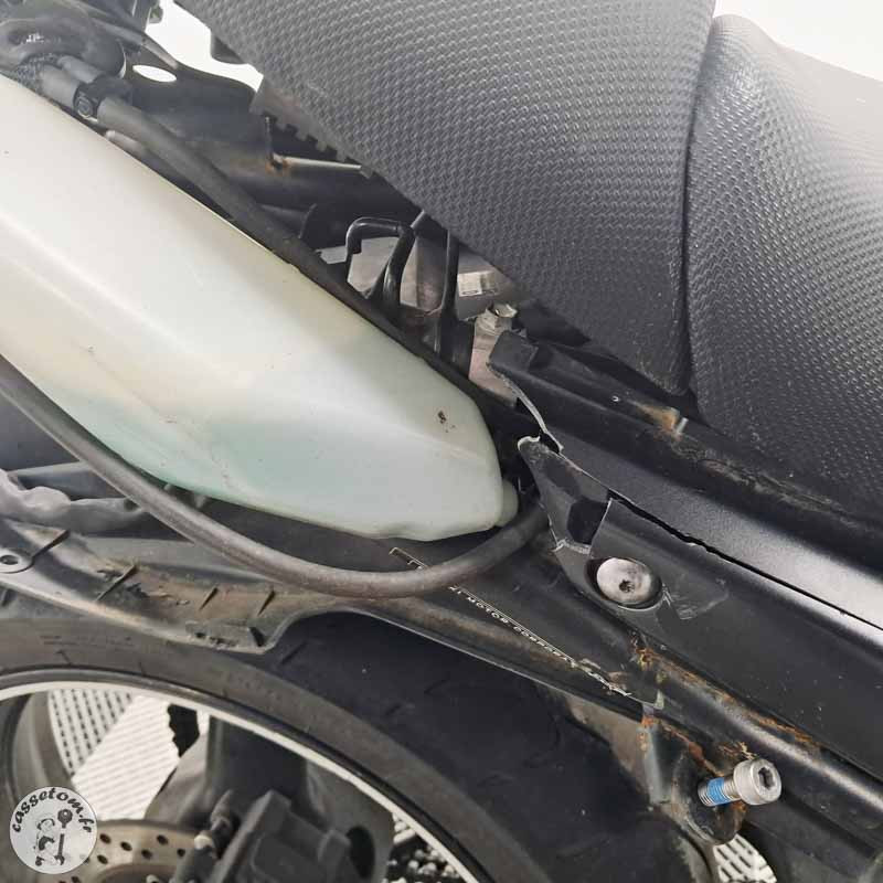 La partie cycle présente un cadre OK avec une géométrie correcte et des butées en bon état. Cependant la boucle arrière est HS suite au choc.