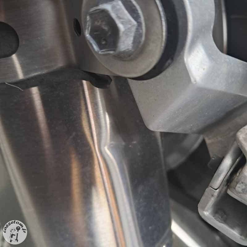 SYNTHÈSE : Glissade côté gauche - Géométrie/cadre/butée/boucle arrière semblent OK - Moteur non bloqué - Kilométrage NC