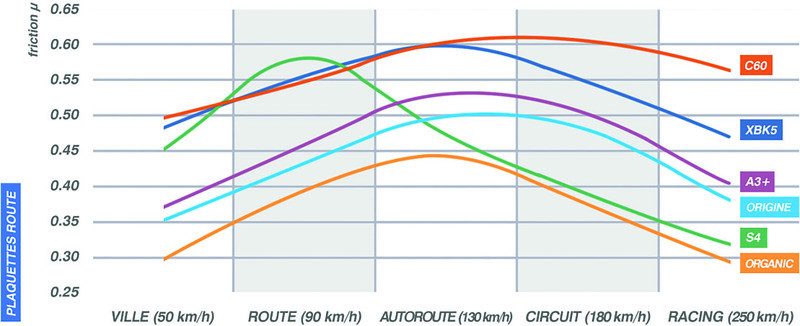 Très bonnes performances de freinage à haute énergie : progressivité et puissance. Pas de fading, peu de perte d’efficacité sous la pluie. Longévité remarquable, voire exceptionnelle dans le cas de motos lourdes et puissantes.