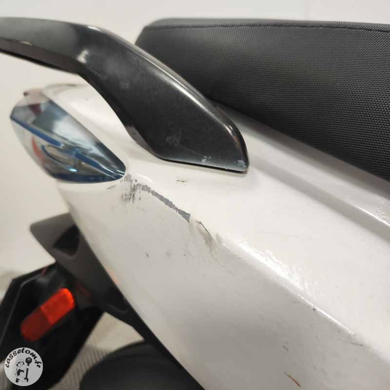 CE QUI FONCTIONNE ✓ Moteur : démarre, aucun bruit suspect, aucune fuite, fixations OK ✓ Géométrie : OK ✓ Boucle arrière : OK ✓ Jante arrière : OK ✓ Électricité 100% : faisceau, circuit de charge, compteur, démarreur, optique, klaxon - tout opérationnel ✓ Freinage complet : étriers, disques, commandes AV/AR - tout OK ✓ Serrures : kit OK avec 2 clés ✓ Châssis : numéro présent et d'origine